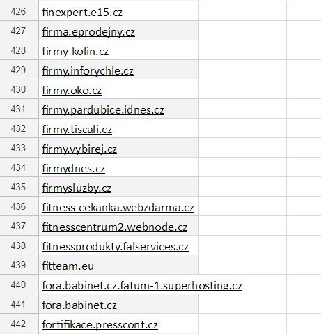 - Jak vidíte, nyní máte samotné domény, nicméně stále potřebujeme provést ještě drobné úpravy. Jde o to, že domény se nám liší např. tím, zda běží na zabezpečeném protokolu, tzn. http:// vs. https://. Dále pak můžeme vidět, že některé URL adresy používají www a některé nikoliv. Budeme tedy potřebovat upravit formát do jedné podoby – bez části www a bez protokolu. Tudíž potřebujeme mít doménu ve tvaru domena.tld (př. pavelzanek.cz).