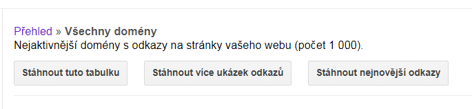 TIP: Pokud využijete jeden z výše uvedených nástrojů, pak zjistíte daleko více informací o zpětných odkazech – ať už se jedná o sílu odkazu či právě zmíněné odkazující stránky. Navíc pomocí těchto nástrojů si můžete usnadnit čas a práci s následnou analýzou odkazů. Také v těchto nástrojích jste schopni jednoduše stáhnout dataset zpětných odkazů, ale jak již bylo řečeno, ukáži vám návod, kde nevyužijete placené nástroje – ano, výše zmíněné nástroje jsou placené.